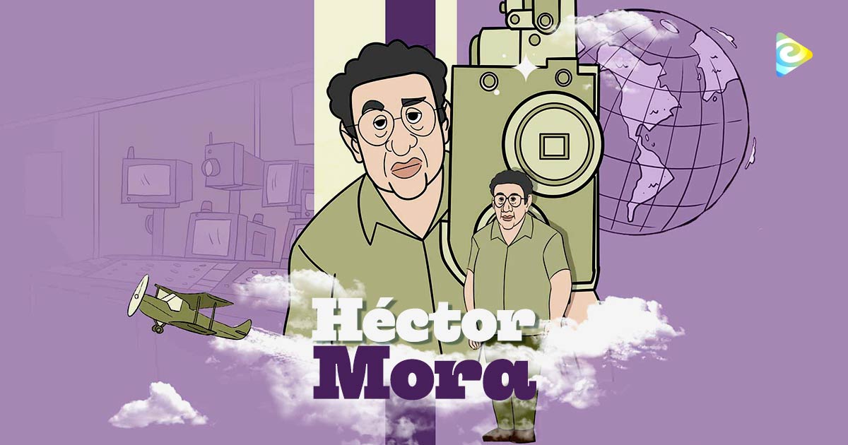Héctor Mora, periodista, documentalista y viajero, cuenta las anécdotas que lo inspiraron a trabajar en televisión. En 1977 propone “El mundo al vuelo”, un programa que lo llevó a recorrer el mundo para dar a conocer el exterior a los colombianos.