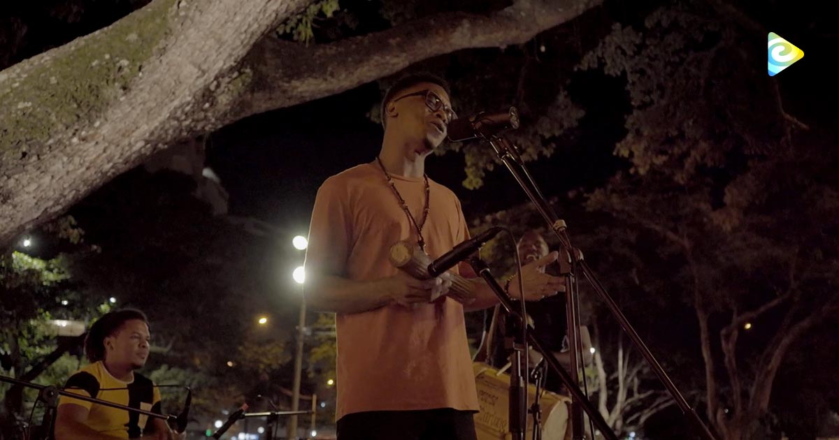Alexis Play, en el Teatrino del Museo la Tertulia de la ciudad de Cali, interpreta su versión de la canción: "Hombe na' ma'" de la Contundencia.