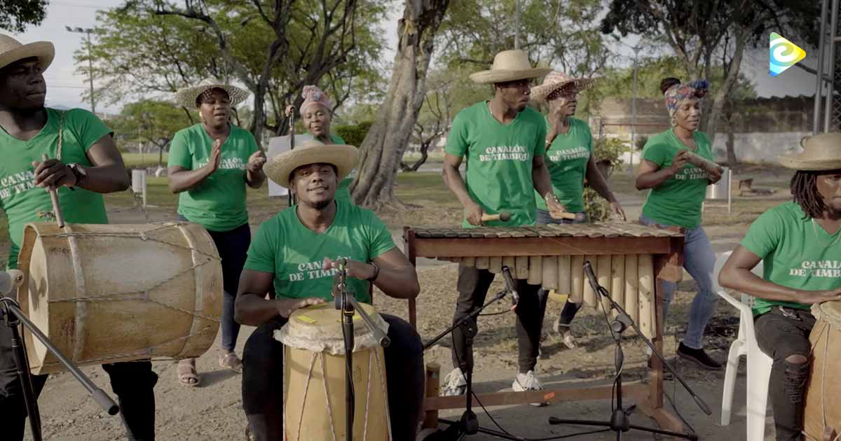Canalón de Timbiquí, interpreta su canción: "Arrullando", acompañado de la marimba, en frente de la casa de la mamá de la cantora Nidia Góngora en la ciudad de Cali.