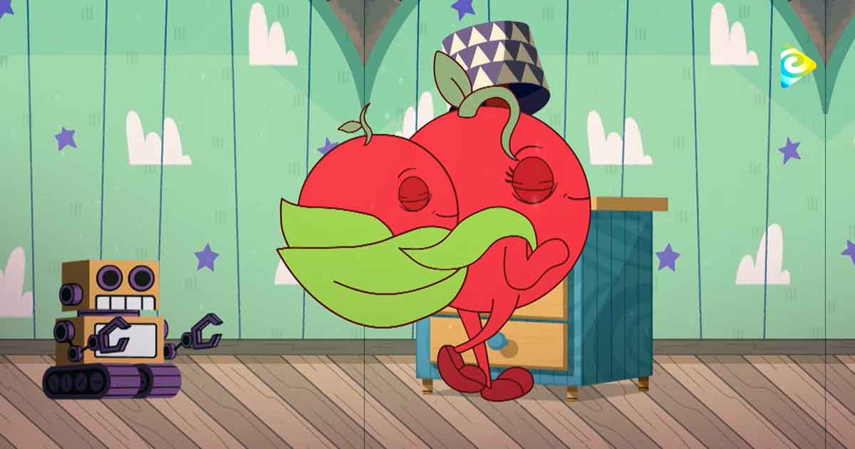 El Pequeño Tomatico se ha ido a dormir pero hay una gran tormenta. Se asoma para ver que pasa y del susto termina escondiéndose. Llora tanto que se inunda su habitación, su madre vendrá a consolarlo.