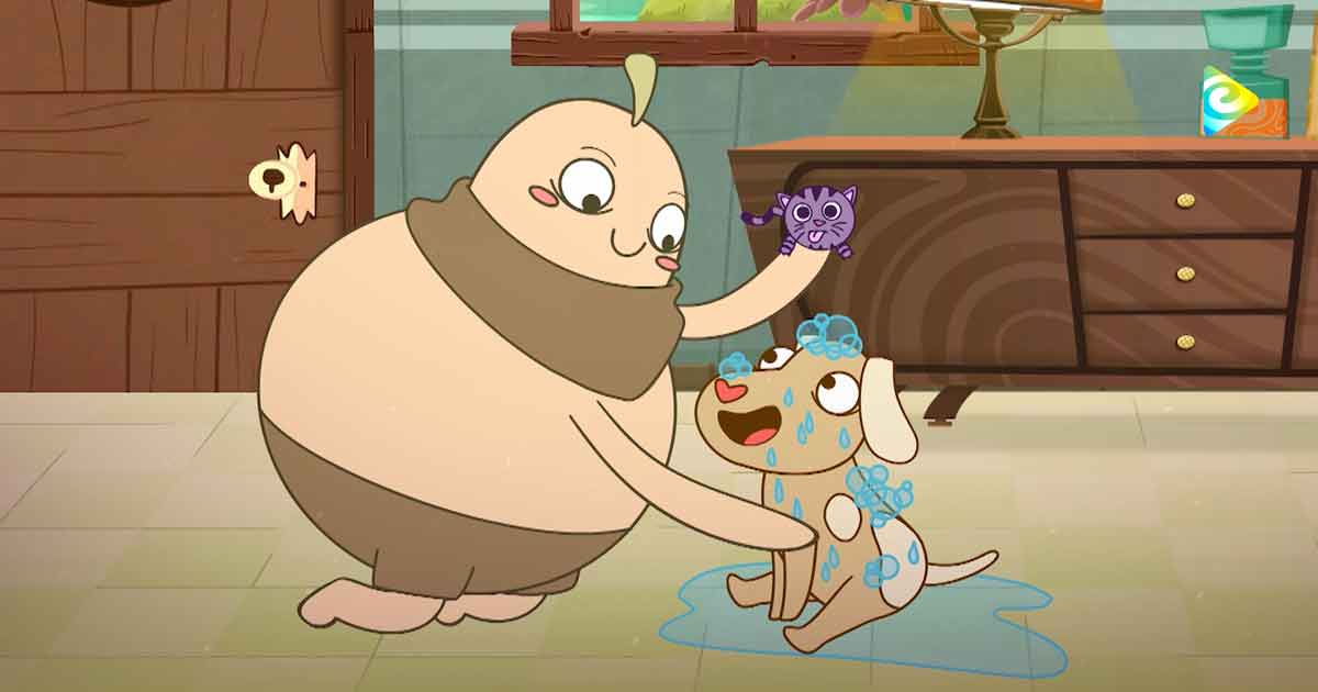 Cebollita encontró a un perro de la calle, lo adoptó y luego se atoró con un juguete. Ahora cuando ladra no le sale un guau sino un miau, entonces Cebollita lo lleva a la veterinaria para recuperar su ladrido.