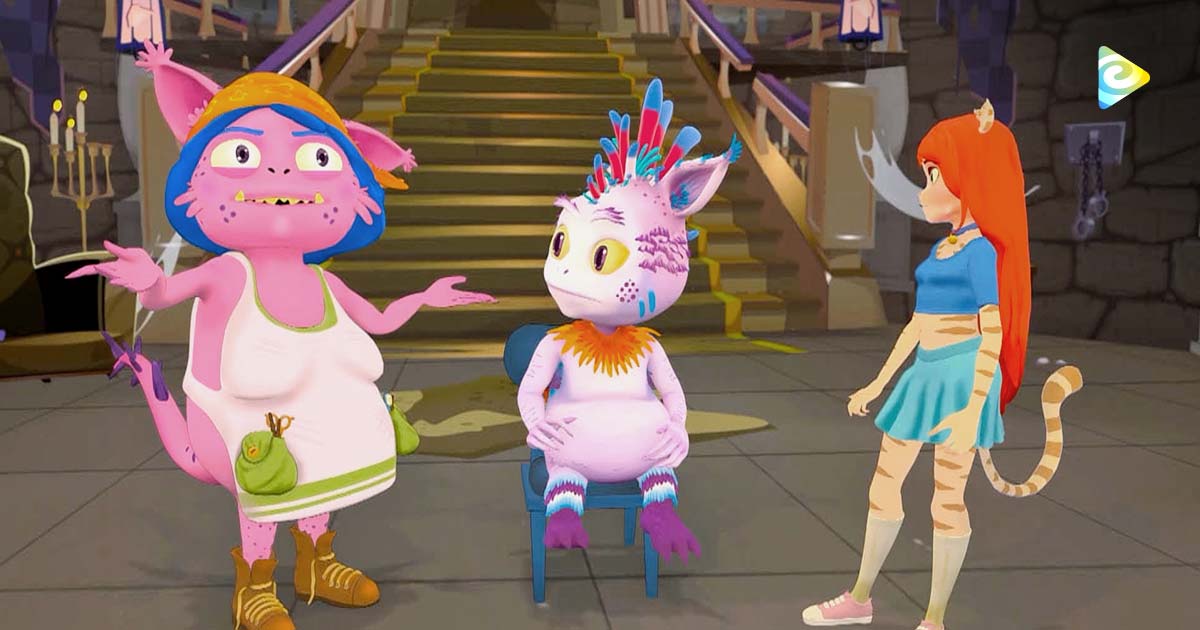 monstruos animados teniendo una conversación