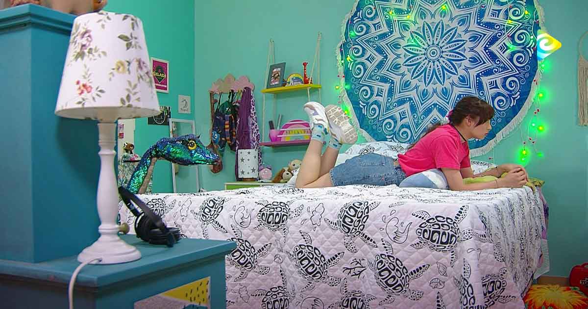 una joven recostada en su cama
