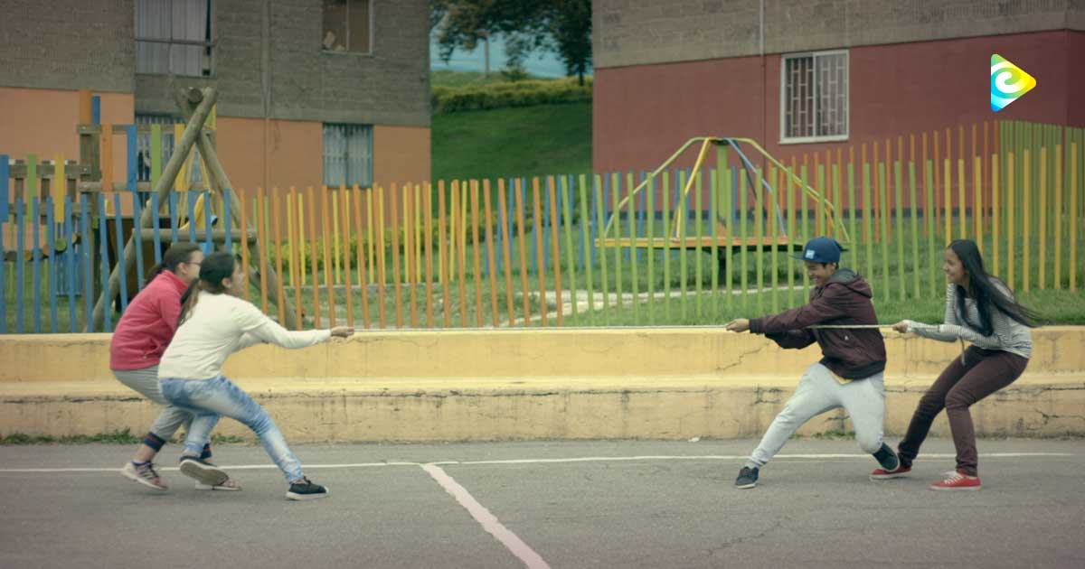 Un grupo de niños halando una cuerda en lados opuestos - En sus marcas