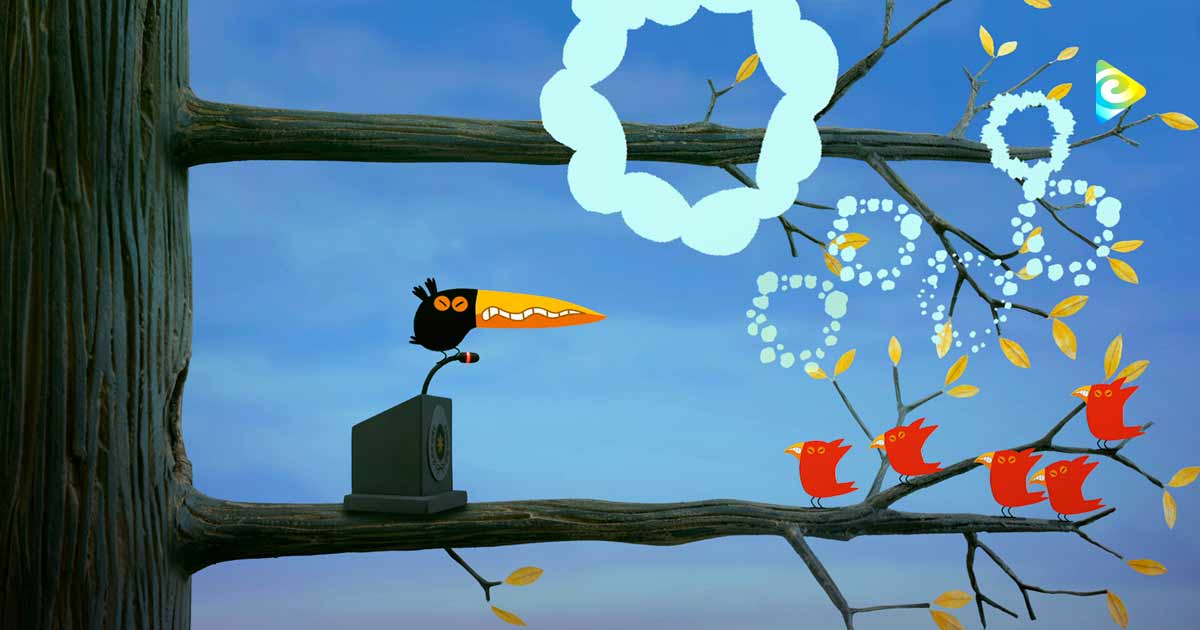 el discurso,  pajaros conquistando, ver dos pajaritos, pajaros animados, pajaros de colores animados, serie infantil, pajaros rojos, series de señal colombia