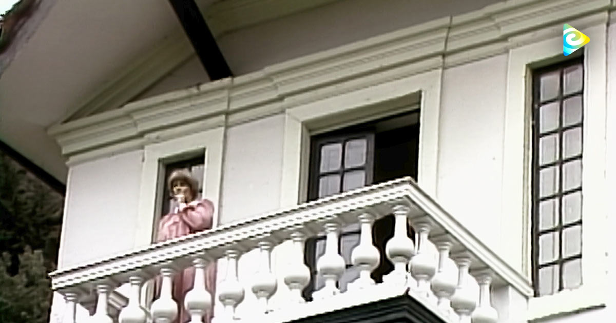 mujer en un balcón