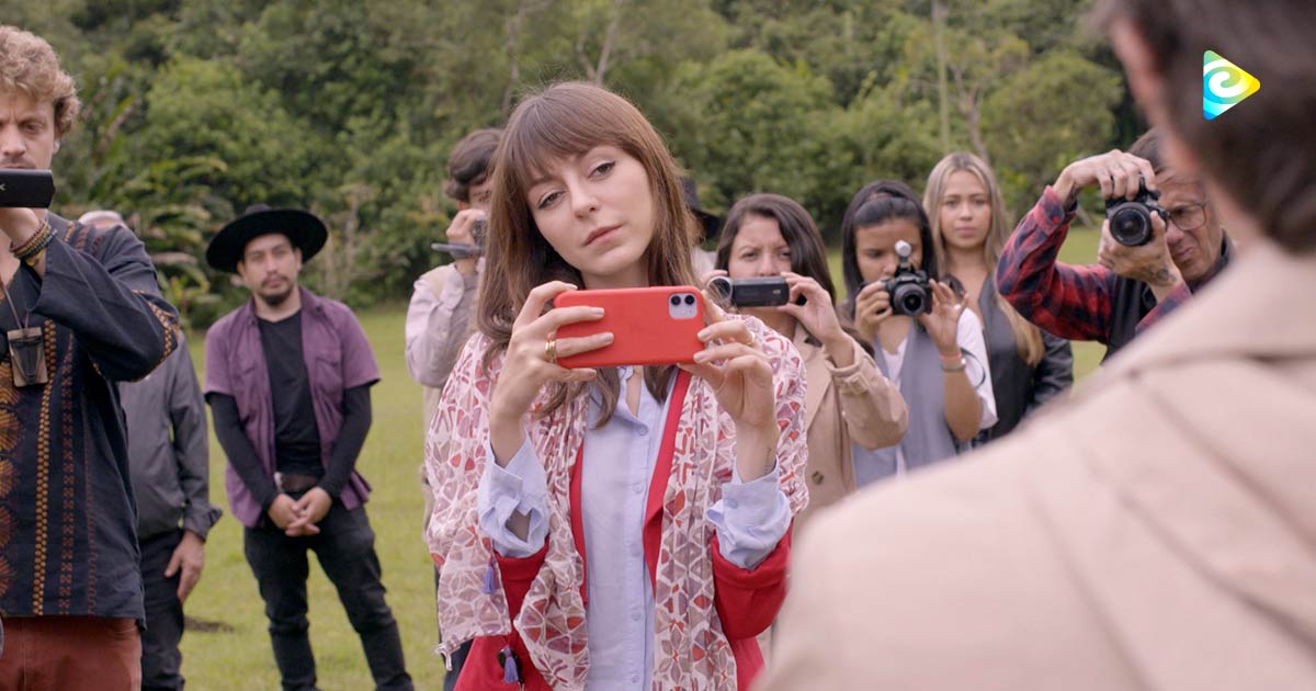 Mujer tomando una foto, serie Reportera Y, arqueología, series colombianas, series gratis, series online gratis, reportaje, arqueología precolombina, series de señal colombia